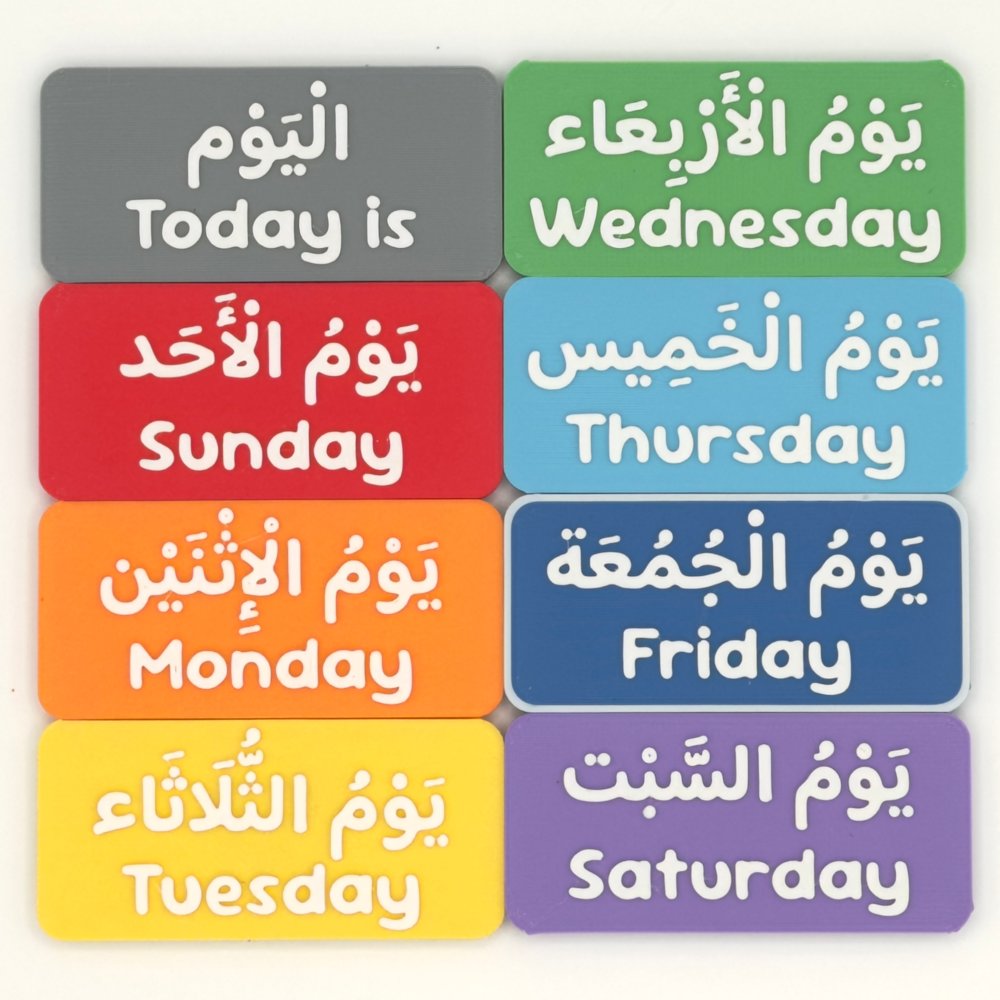 Arabic & English Magnets with Days of the Week, Numbers and Islamic Months